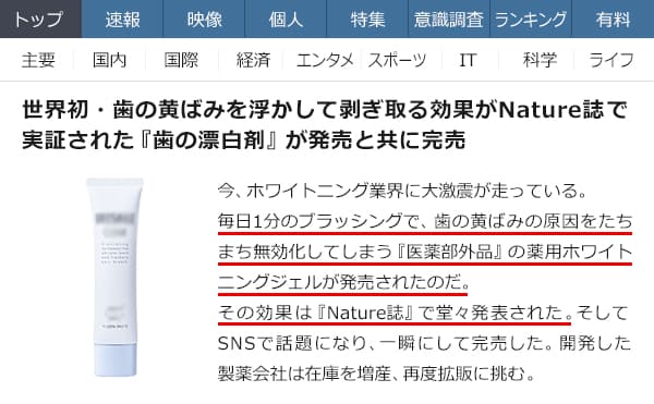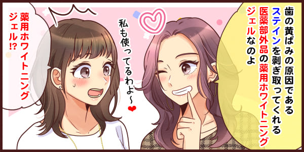 でもそれが、国に認められた有効成分が入った薬用ホワイトニングジェルによって、毎日1分のセルフケアで歯が漂白されるそうなんですよ…